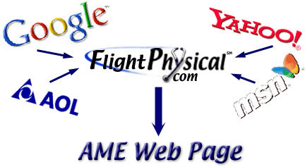 The main problem for solo sites (like individual AME sites) is that new pilots can't find you! Web searchers will not notice a site unless it is listed in the top 10 or 20 results among the thousands listed after a typical search query. Because of the highly individualized nature of solo AME sites, they rarely (if ever) make it into the top ten on the results list without help from a portal site like ours that pools all AMEs together. You will increase your site's page rank in search engines when you have popular sites (like FlightPhysical.com) maintain inbound links to your web address. There is strength in numbers!